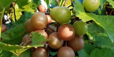 Several muscadine varieties to pick including Scarlet, Scuppernong, Nesbit, and Noble